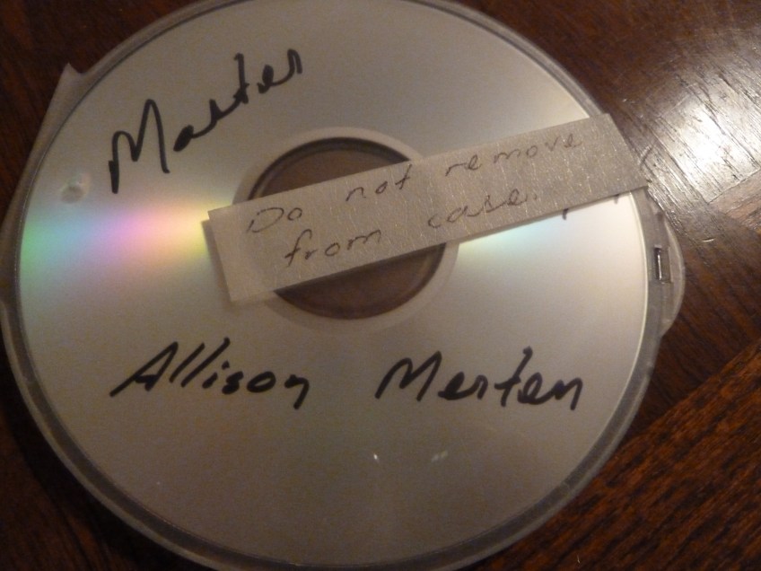 Allison Merten TEMPTATION Master Published January 16, 2014 at 4000 × 3000 in TEMPTATION’s Mastering & CD Art I’m not allowed to open it because the CD needs to stay protected. Share this: Click to share on Reddit (Opens in new window) Reddit Click to print (Opens in new window) Print Share on Tumblr Click to email a link to a friend (Opens in new window) Email Click to share on Bluesky (Opens in new window) Bluesky Like Loading...