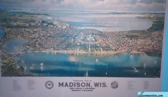 When you first walk into the museum, you can see a wide collection of old maps of various places throughout Wisconsin. I thought this old map of Madison, was extremely beautiful!