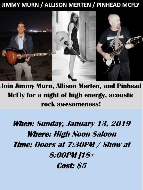 - Jimmy Murn/Allison Merten/Pinhead McFly at the High NoonDate: Sunday, January 13, 2019